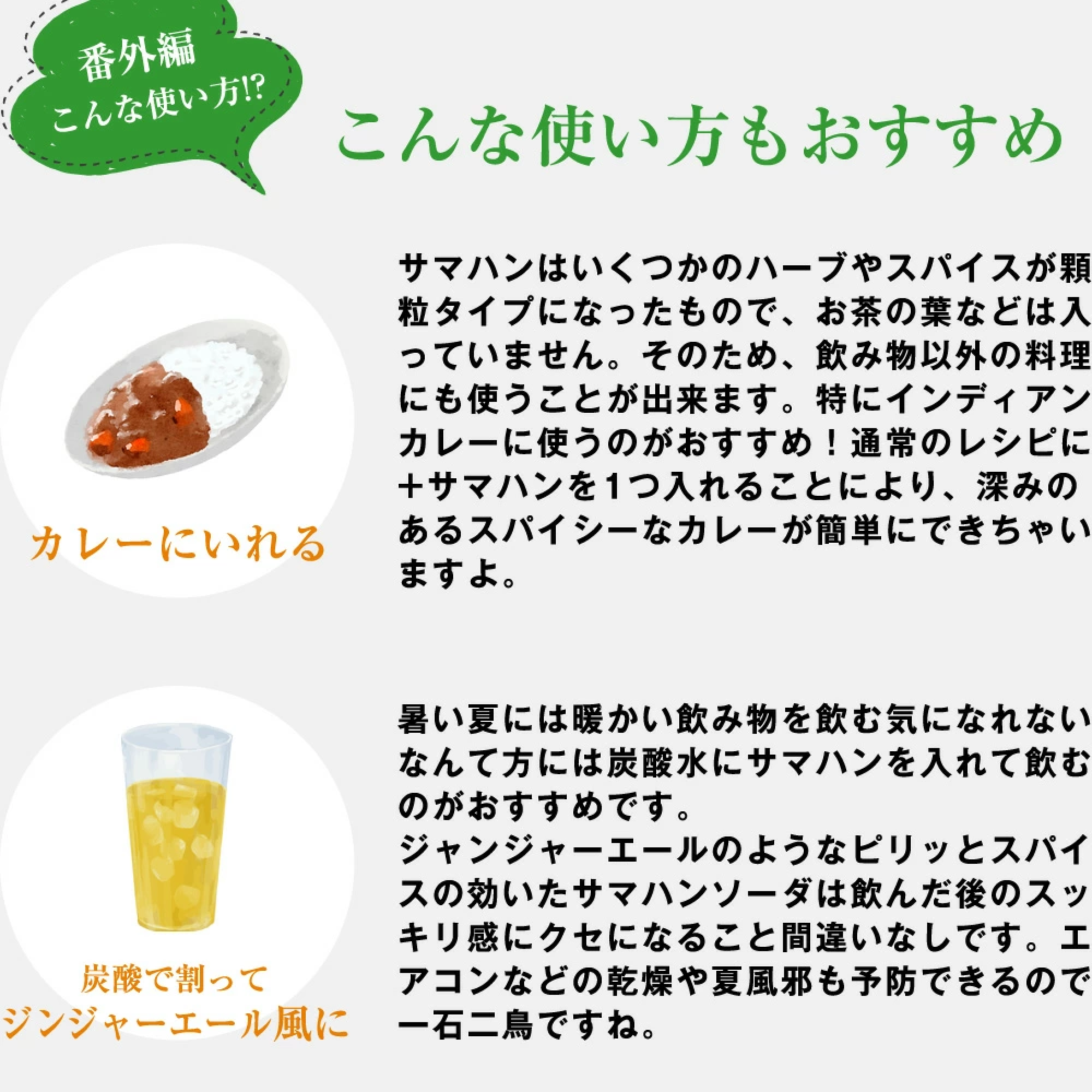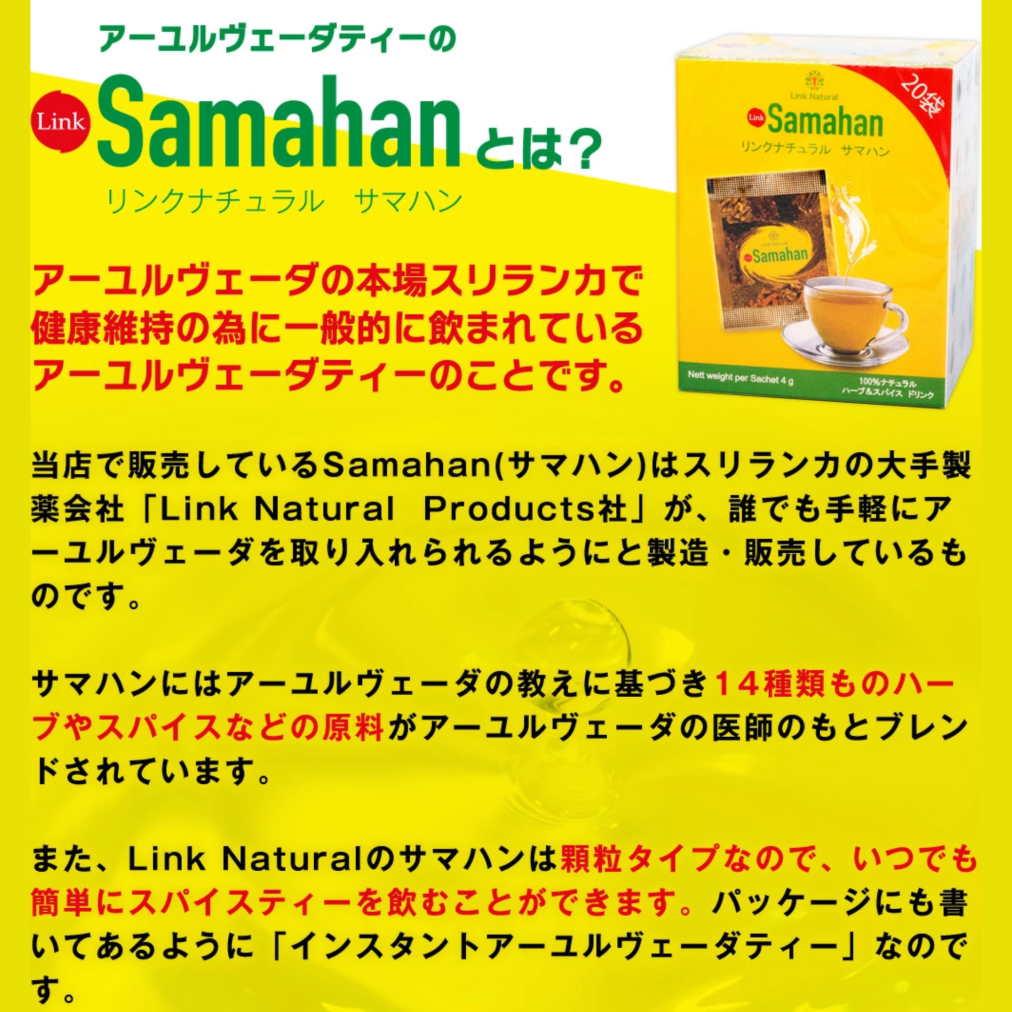 サマハンはスリランカで古くから飲み続けれられているスパイスやハーブをブレンドしたインスタントアーユルヴェーダティーです。