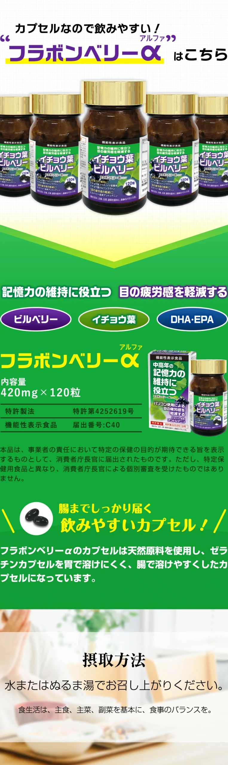 フラボンベリーα【420mg×120粒】イチョウ葉サプリ ビルベリー サプリメント
