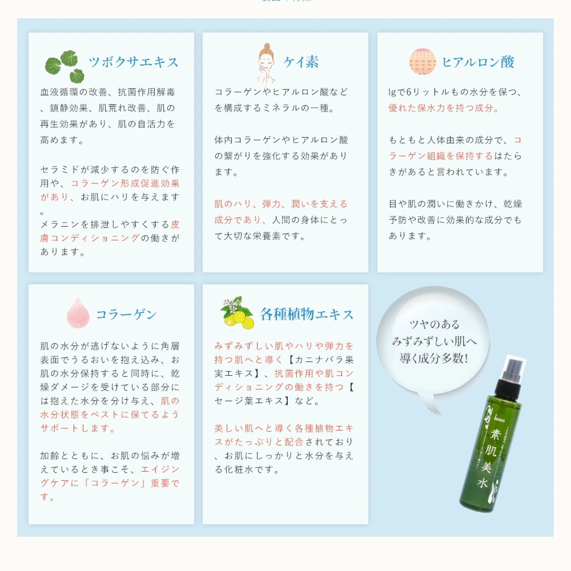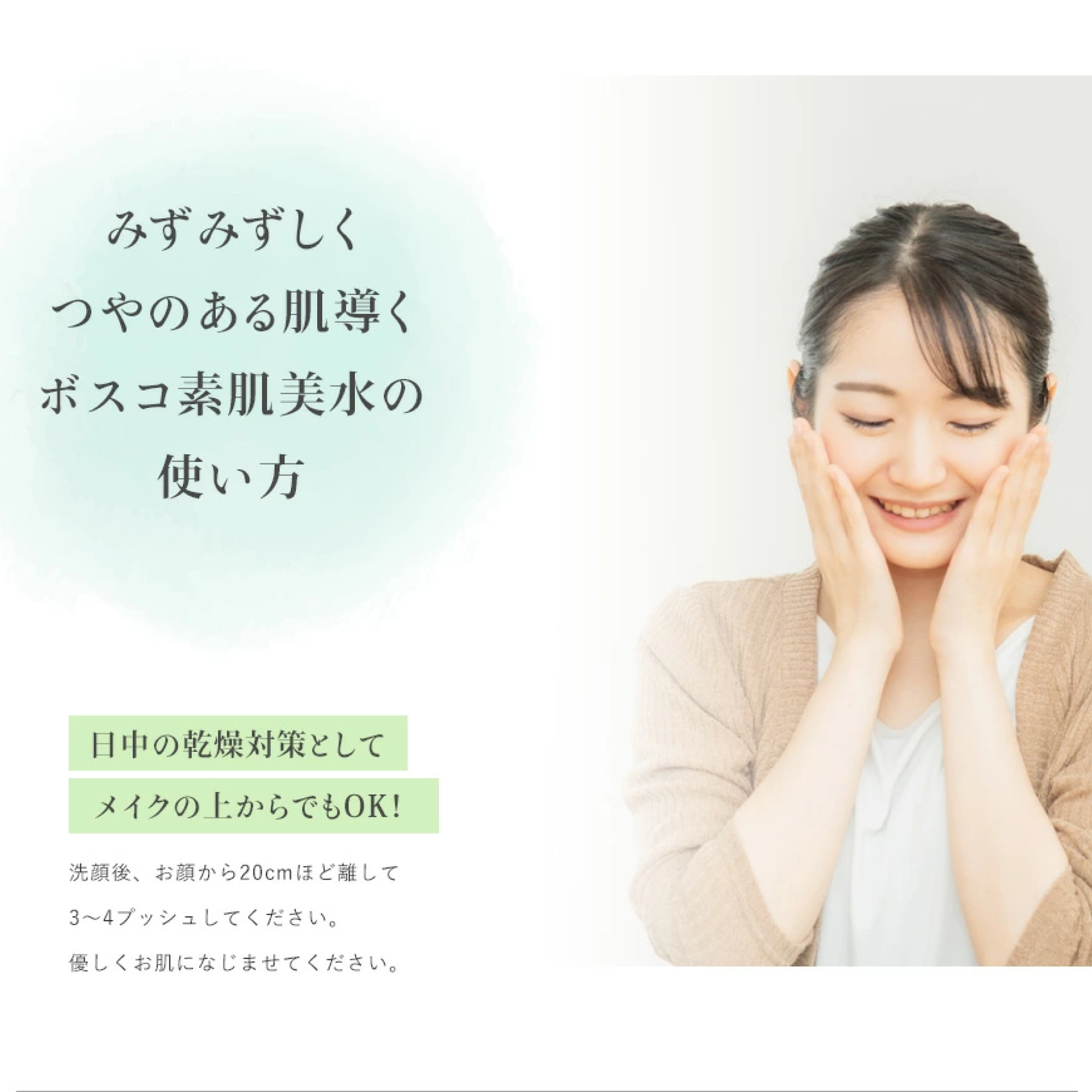 各種植物エキスがたっぷり入った、お肌にしっかり水分を与えるスプレータイプの化粧水。
