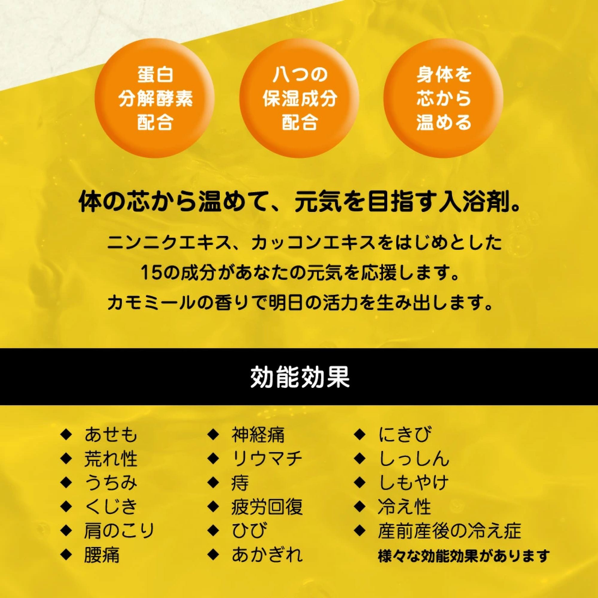 体を芯から温めて、元気を目指す入浴剤です。
