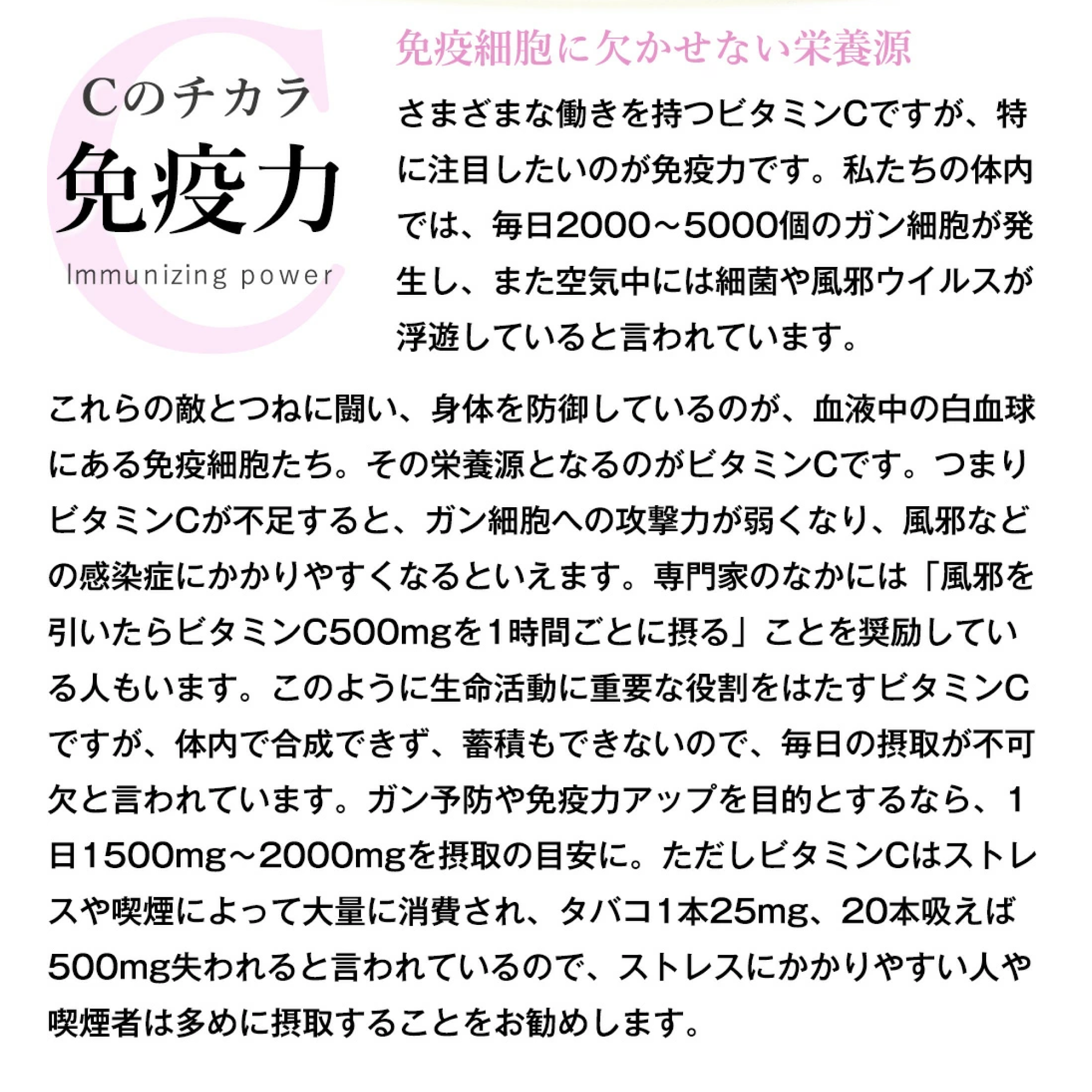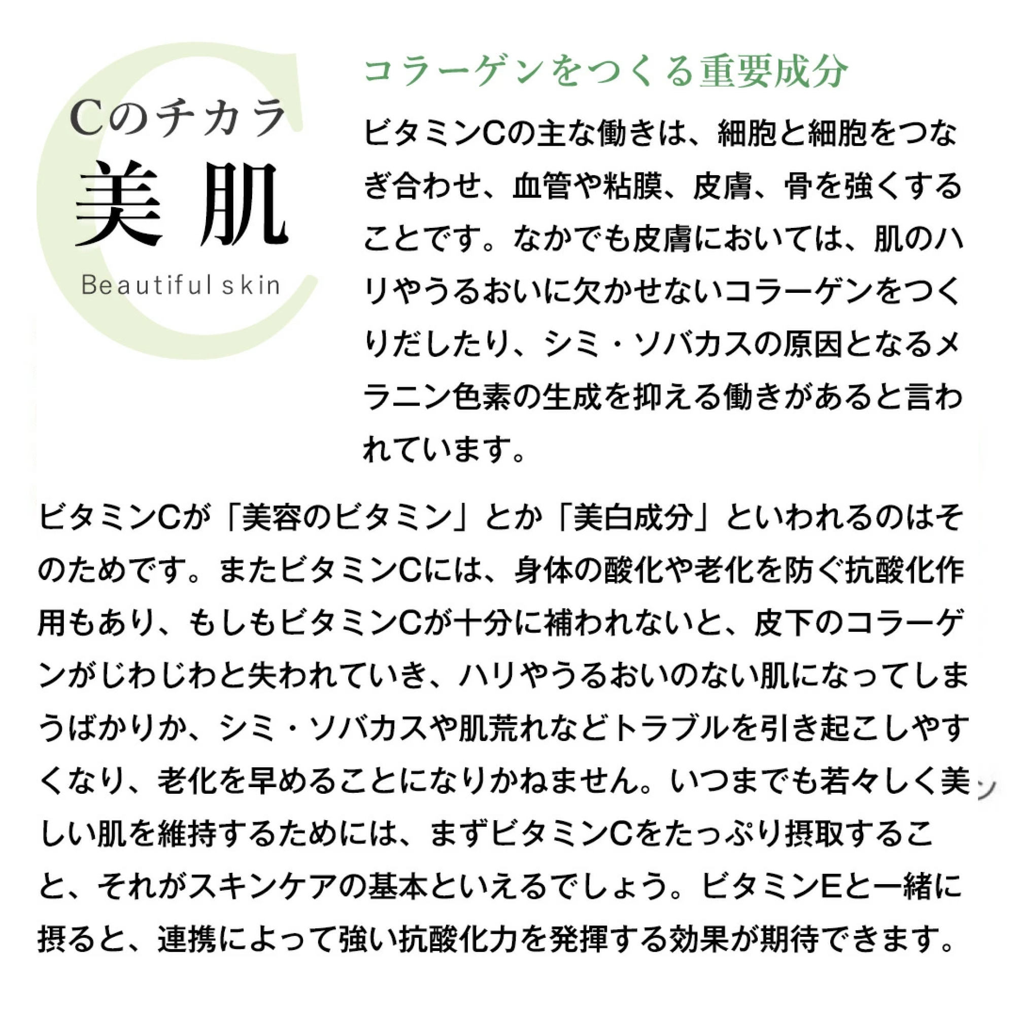 ビタミンCはコラーゲンを作り出したりなど美容面でも効果的で、さらに免疫細胞の栄養素にもなることから免疫力も向上します。