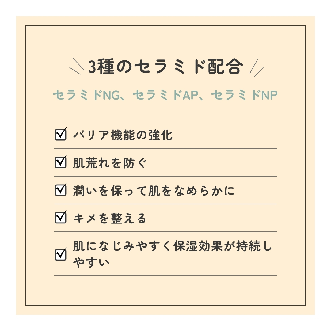 3種のセラミド配合で乾燥しがちな手肌にうるおいを与え、 保湿成分シア脂、尿素、ハチミツ配合でお肌を柔らかくし、乾燥から守ります!